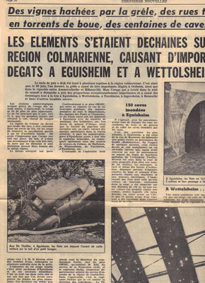 C’était fatal ! « Ces cinq jours de canicules ne pouvaient s’achever autrement que par une catastrophe », titraient les journaux. L’orage du dimanche 12 juin à 1 heure du matin se termine en enfer et ceux qui l’ont vécu se souviendront. Clin d’œil de l’histoire, Eguisheim devient lauréat de l’émission « Chefs-d’œuvres en péril » ce même dimanche 12 Juin 1966.