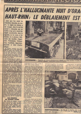 Le 15 Juin 1966 Eguisheim et Wettolsheim sont déclarés « Zones Sinistrées. » Cela permettra d’accéder plus facilement aux aides de l’Etat et au déclenchement des remboursements d’assurances.