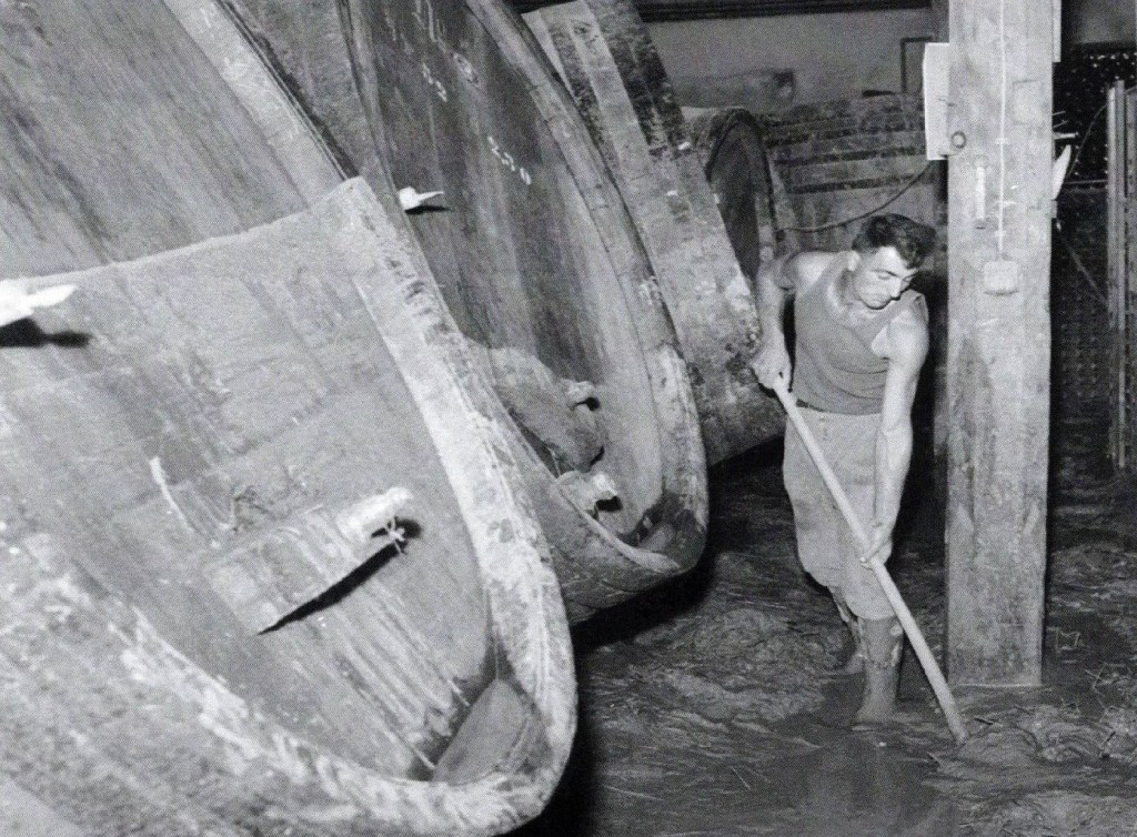 Après le pompage des eaux, il reste de fortes hauteurs de boues retenues sous les piles ou les palettes de bouteilles, sous les tonneaux et les machines. Ce travail s’effectue manuellement car à il n’y avait ni ascenseur ni élévateur dans les exploitations. Voisins, parents, enfants,… tout le monde est sollicité pour ce grand nettoyage qui dura de nombreux jours.