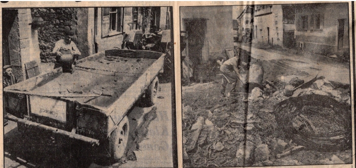 En ce dimanche de la fête Dieu la messe et la procession furent annulées par le curé René Ebel. Tous les villageois s’entraidaient à vider les caves, à nettoyer tant soit peu les rues du village et leurs maisons avec l’aide des renforts de pompiers et entreprises extérieures venues de toute la région au secours des sinistrés. Plus de 40 pompes furent mises en service et le Préfet mit en route le plan Orsec qui dans la semaine permettra de venir optimiser les secours.