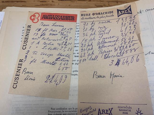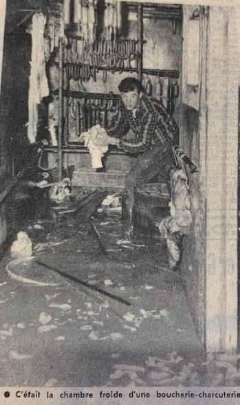 Chez l’épicière Baur Maria et au restaurant de Baur Léonie, (ville de Nancy) comme le local est au niveau de la route l’eau venant de la rue des Trois Châteaux et de la rue Porte Haute s’ engouffre par les ouvertures de l’épicerie et du restaurant. Au restaurant tout est renversé, les chaises et les tables sont détruites. En cave, c’est un désastre : la bière et le vin coulent à flots. Chez Maria à l’épicerie, on vendait encore les produits en vrac dans une armoire à tiroirs. 30Kg de sucre, 30 kg de riz, 36 paquets de persil, 15paquets de savon , 40 paquets d’allumettes, 42 paquets de papier Wc, et 15 tablettes de chocolats ont disparu.