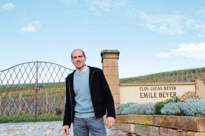 Mais Christian Beyer est également très pragmatique. Après avoir fait ses classes dans le Sauternais, en Bourgogne et en Allemagne, il a compris très vite que le marché du vin s’était mondialisé et qu’il fallait s’ouvrir à l’international. « Emile Beyer était le nom de mon grand-père : on se transmet nos parcelles depuis 14 générations ! Quand j’ai repris l’exploitation il y a quinze ans, la part d’exportation est passée de 5 à 40%. C’est dingue qu’un type de Chicago pense à commander un Grand Cru d’Alsace au restaurant, mais aujourd’hui, c’est aussi comme cela que ça marche. Du vin, on en fait partout. Pour un Chinois, du Riesling ne peut être qu’allemand… Du Riesling, on en produit d’excellents en Nouvelle-Zélande ou aux Etats-Unis… Mettre une cigogne sur une bouteille, ça ne suffit plus. Pour se démarquer, pour faire que le Vin d’Alsace retrouve une image de prestige, il faut miser sur la qualité, la spécificité de nos terroirs, et redonner à nos bouteilles cette part de rêve, à l’image du Bordelais ou de la Bourgogne. Ce qui a nui à l’image du Vin d’Alsace, c’est son côté bon marché, son bon rapport qualité/prix. Le prix, c’est le premier critère de décision du consommateur. Un Riesling à 5€, qu’en déduit-on ? »