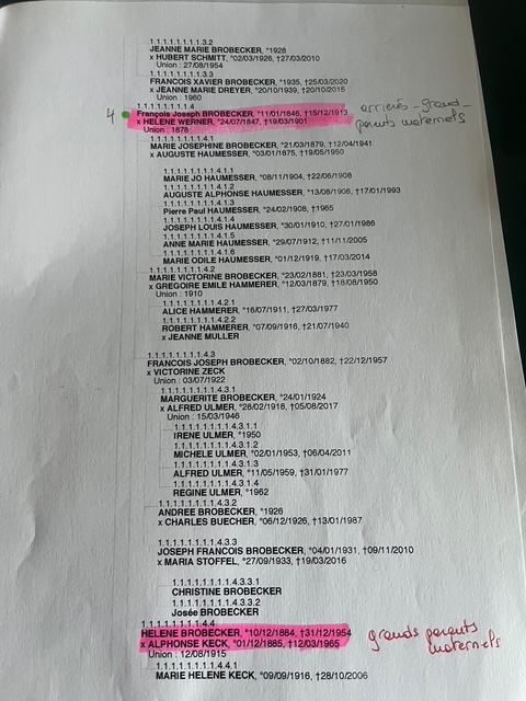 L’arbre généalogique des Brobecker d’Eguisheim : une très grande famille dont certains étaient maires ou aubergistes.