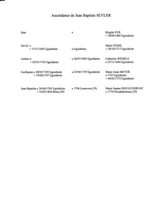 Voici l’acte de naissance et de décès de Jean Baptiste SEYLER, né a Eguisheim le 26 juin 1765 et décédé à BREST finistère le 10 mars 1830. Engagé comme chef tailleur au 111ème régiment d’infanterie et stationné en Bretagne, il décida en 1796 de fonder une famille dans la ville de Landerneau puis Brest, Finistère.
