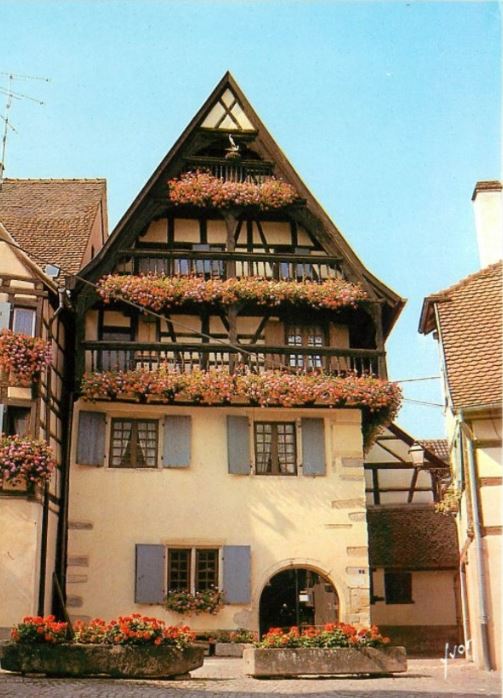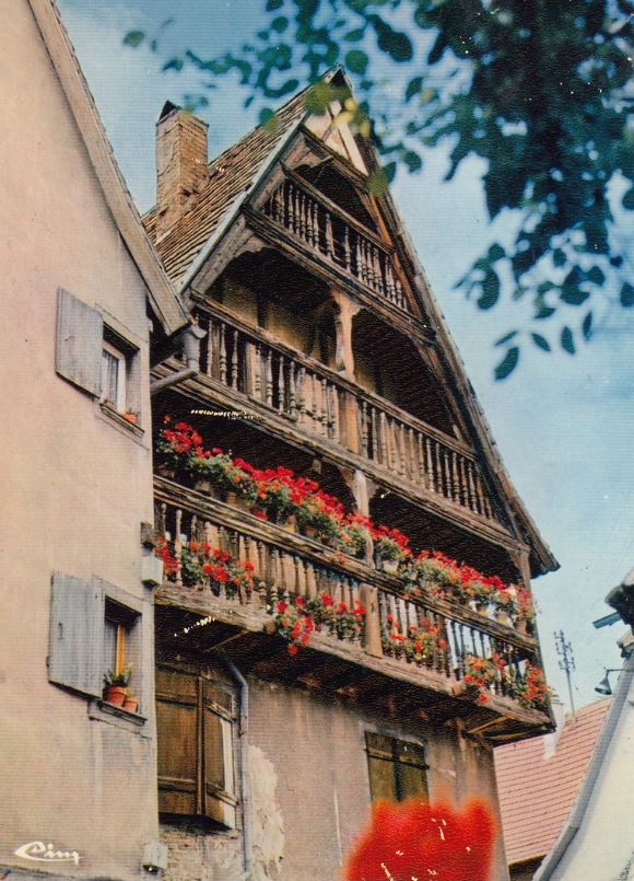 Dans les années 80 : Monsieur Harau, vannier, exerçait dans sa maison place Jeanne d’Arc. La maison au trois balcons en bois, l’une des plus vieilles et plus belles maisons D’Eguisheim !