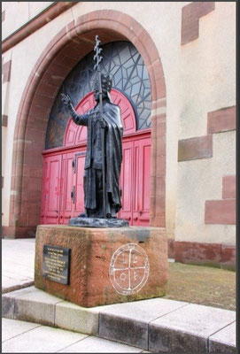 C’est le sculpteur Colmarien Jean Luc Schické qui a réalisé la sculpture en bronze et les trois piliers en béton teinté. La bénédiction du monument a eu lieu en présence de Monseigneur KRATZ le Dimanche 19 Août 2012 à 17h.